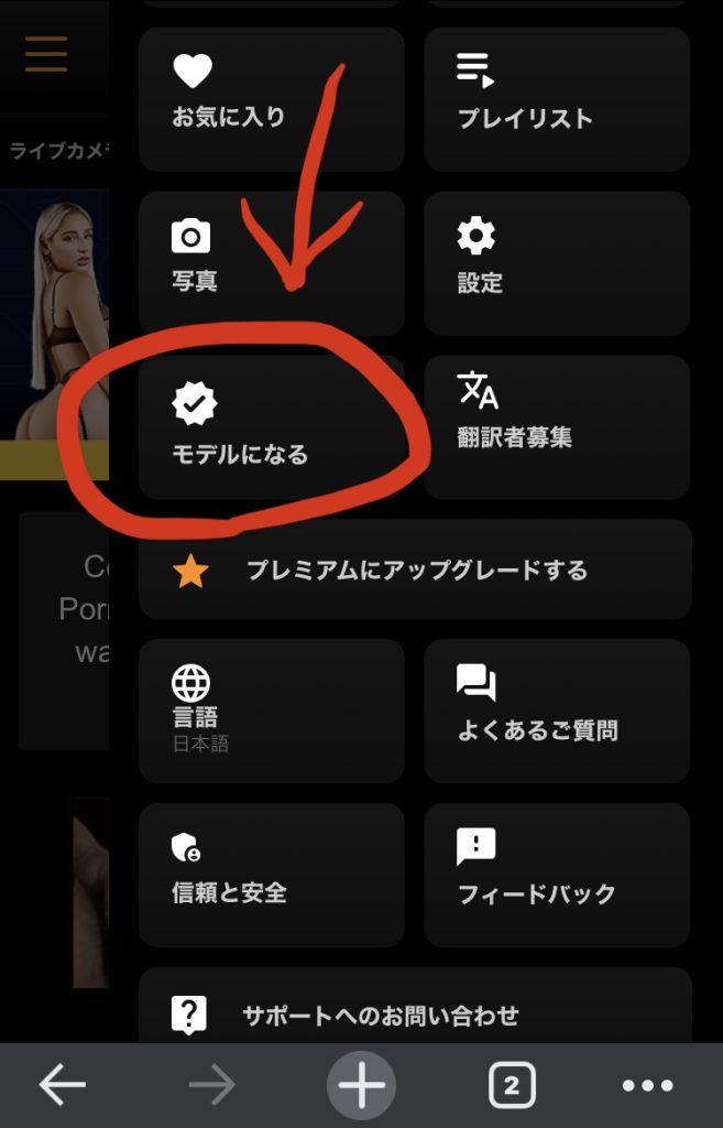 そして、この広告収入を得るためにはPornhubで『モデル登録』をします。