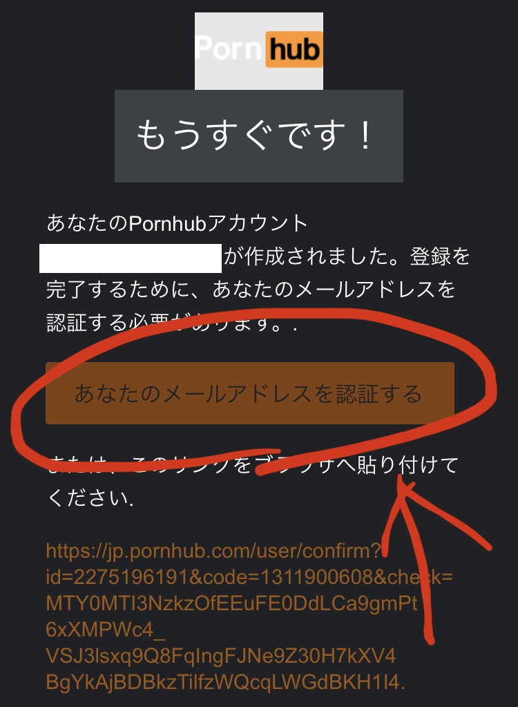 メンバーになると登録したメールアドレスにPornhubから下記のようなメールがきます。